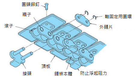 - 曲線輸送用不鏽鋼鏈條的標準型