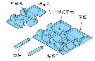 - 通過在鏈條側(cè)面安裝新月型頂板,實現(xiàn)水平輸送的高容許張力型